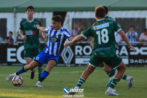 El encuentro tuvo un arranque lento por parte del Dépor, ya que el Coruxo impuso una sólida presión que obstaculizó sus intentos de avanzar. A pesar de esta dificultad, algunos destellos de juego aparecieron en los costados del campo, con José Ángel como el hombre clave en la distribución del balón. Los extremos Narro y Caroutas buscaron constantemente penetrar la defensa rival.