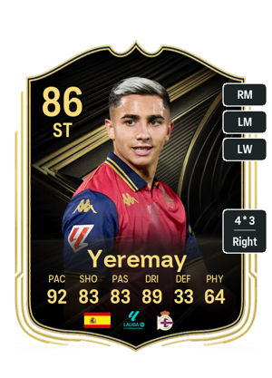 De este modo, el canterano ha recibido un aumento de diez puntos en su carta, pasando de tener 76 de media en su carta básica a 86 en la del equipo de la semana. Todas sus estadísticas han subido más de diez puntos -excepto el ritmo- colocándolo como un buen ítem dentro del juego. Otra de las diferencias con su carta de oro es la posición, ya que el canario aparece como delantero centro en lugar de hacerlo como banda izquierda.