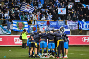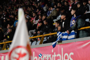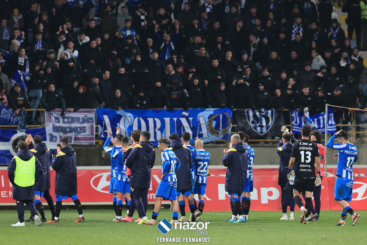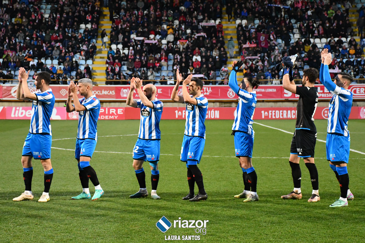 Más de 1.000 deportivistas se desplazaron al Reino de León para sufrir una nueva decepción del Deportivo. Los jugadores se acercaron a agradecer el apoyo y reconocer el esfuerzo de una hinchada que despidió al equipo con pitos.