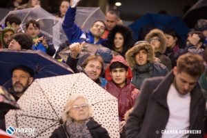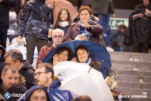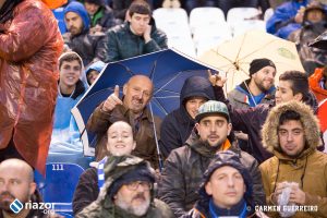 Pese a todo, y a que era un partido un domingo a las 20:45h, en Riazor se dieron cita 25.786 personas. Aunque había muchas camisetas del Barcelona, y varios carteles hacia Andrés Iniesta, la predominancia eran las camisetas blanquiazules y también las bufandas de «Voltaremos«. Así que pese a la mala temporada del equipo, la afición del Deportivo no paró de animar en ningún momento, ni cuando el Barça consiguió poner distancia con dos goles.