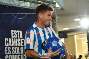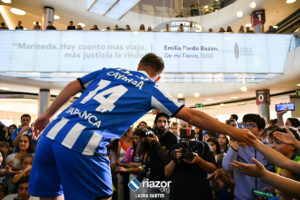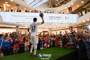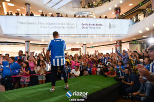 El Deportivo eligió un centro comercial de A Coruña para hacer la puesta en largo de las equipaciones de la temporada 23/24. Como es habitual en estos casos, fueron las caras nuevas las que presentaron las camisetas ante más de 200 seguidores del equipo.