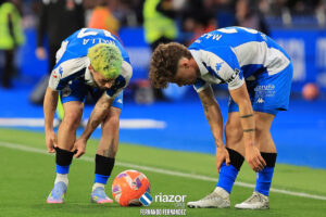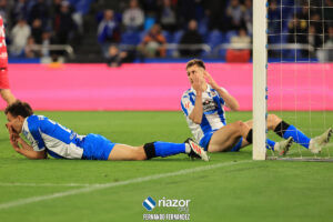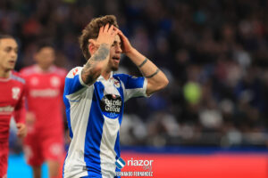 Los minutos finales fueron el reflejo de lo que por momentos transmite este equipo. Una sensación de desesperación invadía a Riazor y a los jugadores por los fallos que acumularon en el segundo tiempo los delanteros coruñeses. Incapaces de batir a Édgar Badía pese a no dejar de intentarlo.