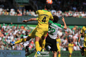 En la primera parte, los locales se mostraron intensos, pasando por encima de un Deportivo que se vio superado durante los primeros 45 minutos. En los primeros instantes del partido, en un saque de esquina, Helton Leite fue molestado por un atacante rival al intentar despejar el peligro. A pesar de que el balón entrase en la portería, el colegiado señaló falta en ataque. En esta ocasión, a diferencia de otras veces, desde la sala VOR recomendaron al colegiado la revisión de una jugada que acabó en gol a instancias del videoarbitraje.