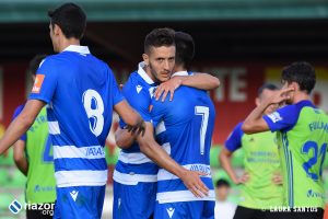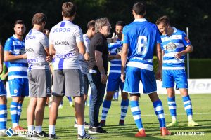 El técnico del Deportivo decidió darle descanso a Gaku, con lo que el doble pivote fue para Álex Bergantiños y Vicente. Pedro Sánchez, Borja Galán y Aketxe fueron los jugadores que debían surtir de balones a Borja Valle, único punta en este encuentro. De hecho, fue un partido en el que el delantero aprovechó para reivindicarse dejando buenos minutos y varias ocasiones para adelantarse.