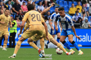 Obrador sigue creciendo en el lateral izquierdo del Deportivo y completó un gran encuentro. Está cumpliendo en defensa y comienza a dejar muestras de la amenaza que puede ser en ataque.