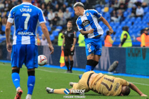 Lucas Pérez volvió a mostrarse muy activo en el frente de ataque blanquiazul y tuvo varias ocasiones de esas que el ‘7’ no suele perdonar. Se le fueron por muy poco dos disparos marca de la casa, uno desde la frontal en un balón suelto, otro con un tiro cruzado en la segunda parte.
