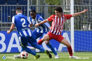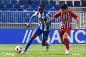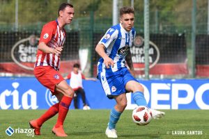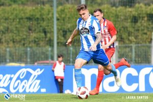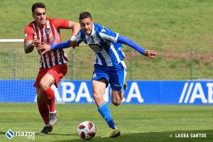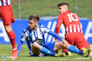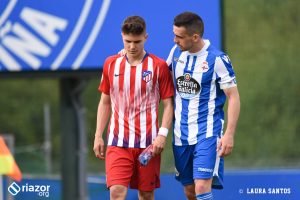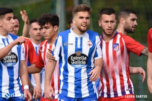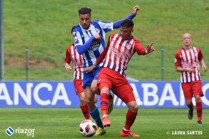 Tras el pitido inicial, el primer aviso fue de los locales. Un gran centro de Abeledo para Uxío terminó fuera por falta de contundencia en el tiro del lucense. Sin embargo, tan solo un minuto después Mollejo puso por delante a los suyos gracias a un remate cruzado de cabeza al saque de una falta lateral. Una vez abierto el marcador, el Atlético dispuso de más ocasiones para aumentar su renta. La tuvo Rodríguez tras una buena combinación entre Mollejo y Muñoz, pero Álex Cobo hizo una gran parada para evitar el segundo.