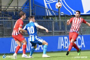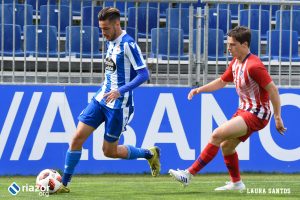 El once planteado por Luisito para afrontar el decisivo choque ante los rojiblancos contó con numerosas sorpresas. Cobo regresó a la portería y Lucas Viña volvió al banquillo en beneficio de Abeledo, que jugó de lateral izquierdo de nuevo. En la medular, Sebastien repitió titularidad con Gandoy. En el ataque, los habituales jugaron con un Uxío que volvió al once tras una jornada desbancado por Guille May.