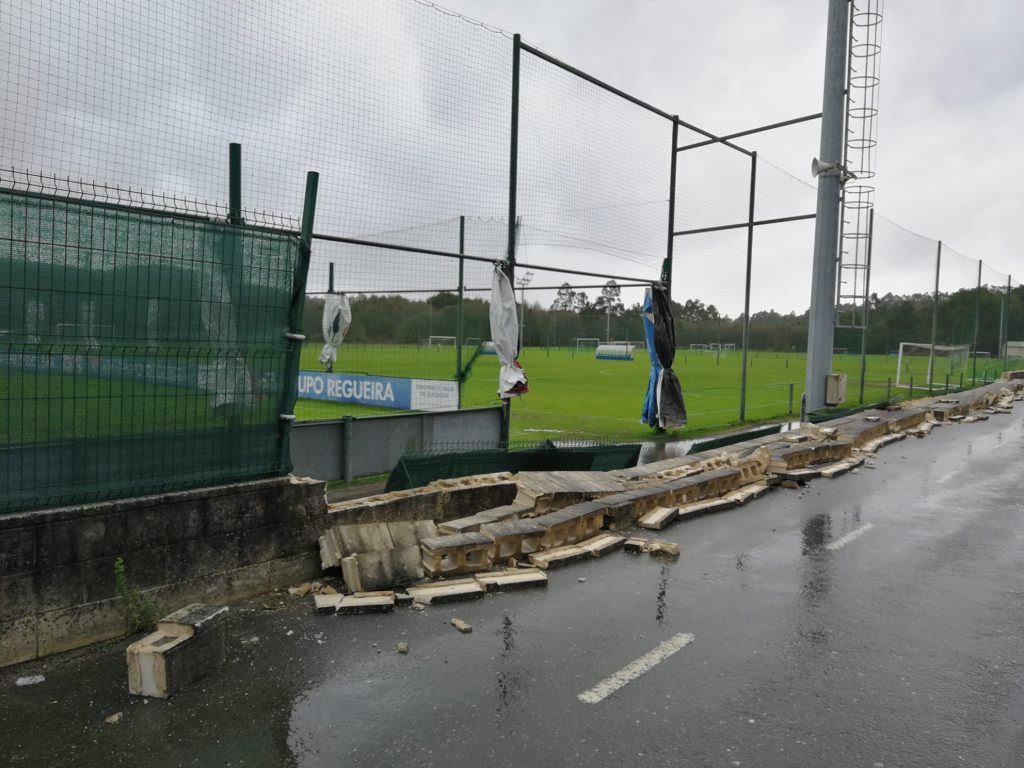Esta malla hizo ‘efecto vela’, con lo que la presión que se generó sobre la lona terminó por derribar parte del muro de hormigón. Además, las rachas de viento llegaron hasta tal extremo que desplazaron uno de los banquillos situados en la ciudad deportiva de Abegondo, hasta terminar derribándolo.