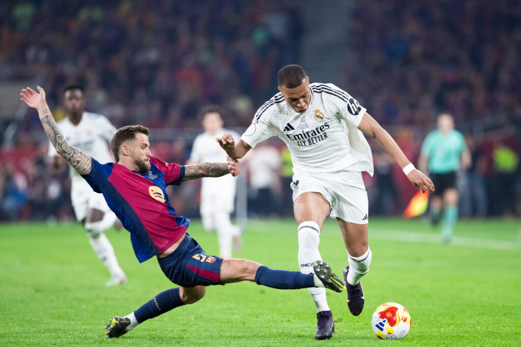 El Real Madrid ofrece un perfecto equilibrio entre el control del balón y la agresividad ofensiva. Con una posesión media del 58%, ligeramente inferior a la del Barcelona, el conjunto blanco prioriza la velocidad en sus ataques y la capacidad de sus delanteros para castigar con espacios. Jugadores como Vinicius y Mbappé representan la esencia de esta estrategia: velocidad, desequilibrio y una mentalidad siempre orientada al gol.