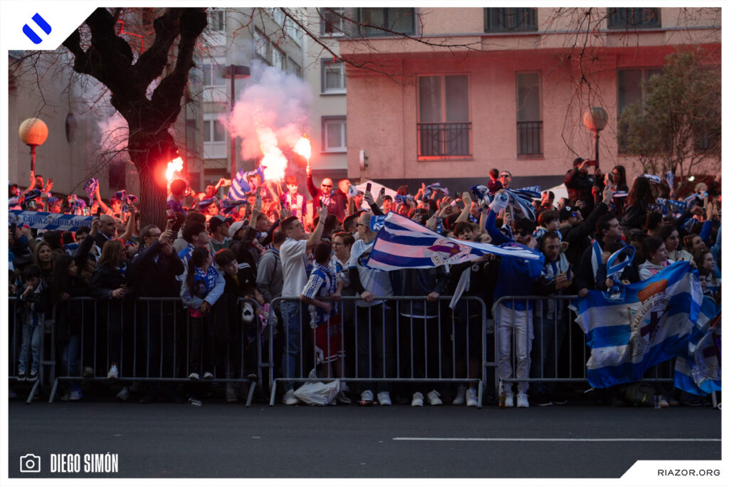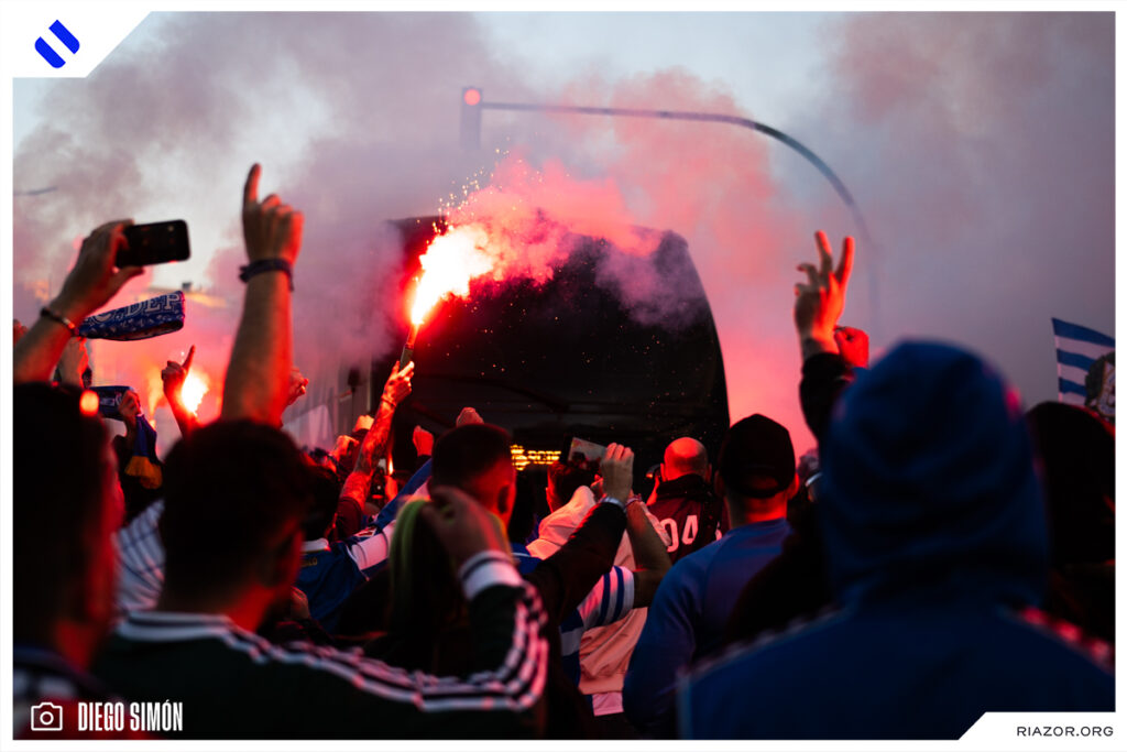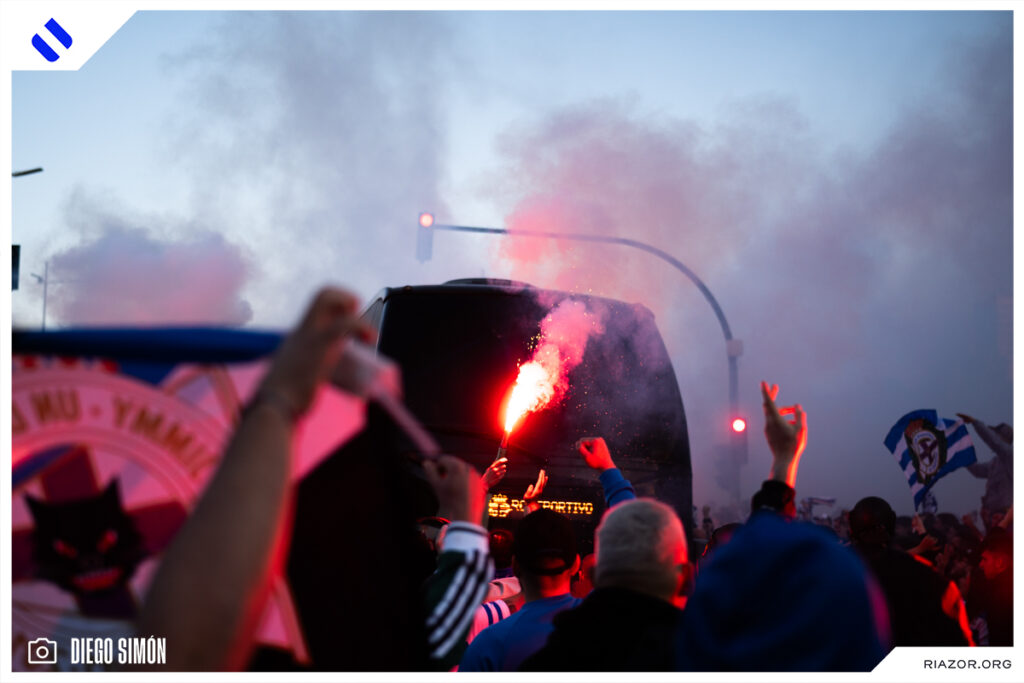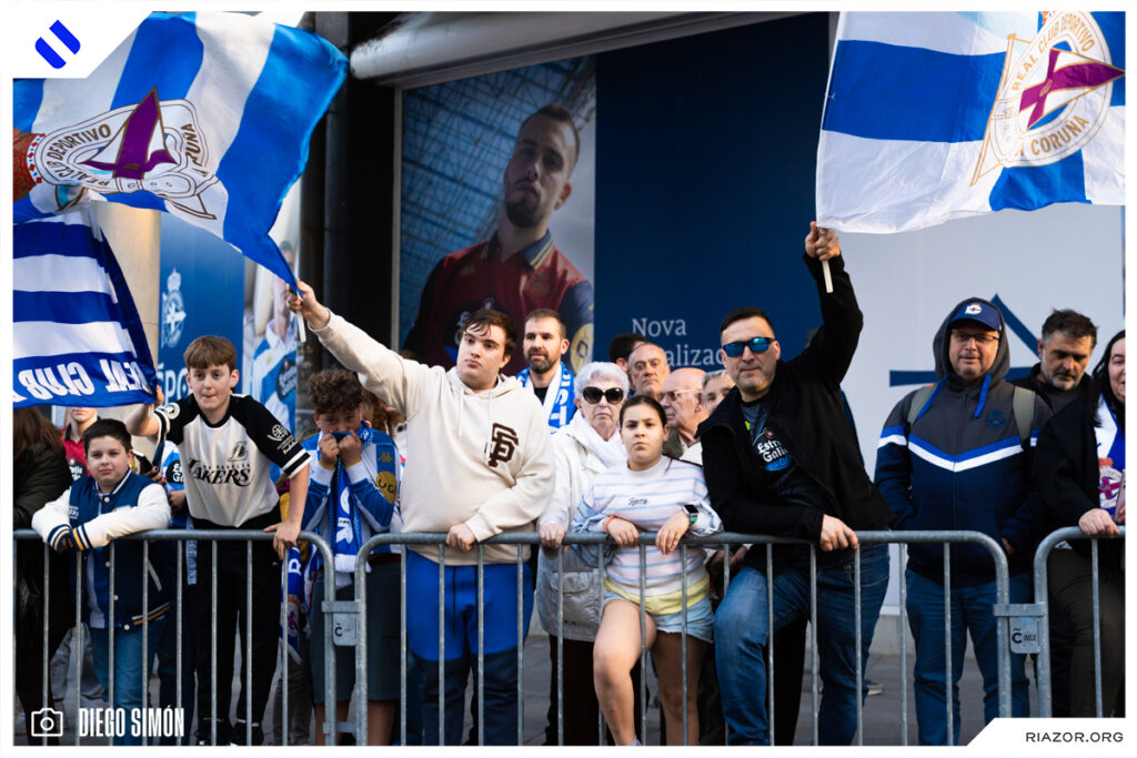 Cerca de 25.000 espectadores se reunieron en las gradas y los aledaños de Riazor para animar a su equipo desde bastante antes del pitido inicial y hasta después del final del partido. Desde las 19:00 horas, dos antes del comienzo del choque, miles de deportivistas recibieron a su equipo en la llegada al estadio con cánticos, bengalas, banderas y bufandas. Si fuiste uno de los que recibió al equipo o lo animó desde las gradas, búscate en nuestra galería de la afición del Deportivo – Zaragoza.