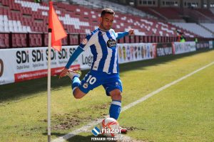 Mario Soriano tuvo la primera ocasión clara para el Deportivo. Su disparo cruzado salió rechazado tras impactar en la cepa del poste. El mediapunta jugó escorado a banda contra la SD Logroñés.