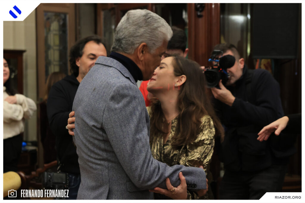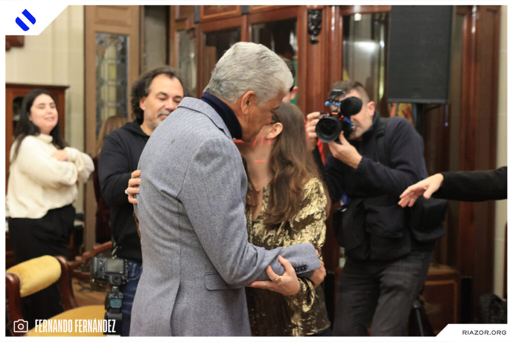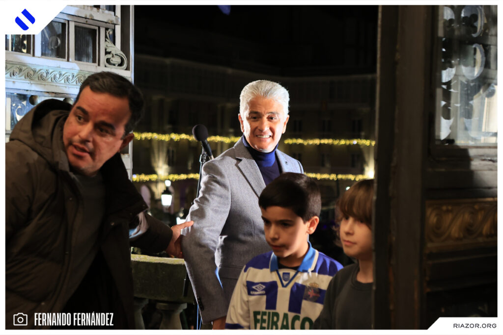 Tras dar un emotivo discurso en el que aseguro que el Dépor está en su corazón y que «vamos a volver a Primera», se retiró del balcón para regresar al interior del palacio de María Pita. Allí lo esperaba Lendoiro, con el que protagonizó un emotivo reencuentro. El expresidente y el exdelantero se fundieron en un abrazo y estuvieron charlando unos minutos una vez finalizado el acto.