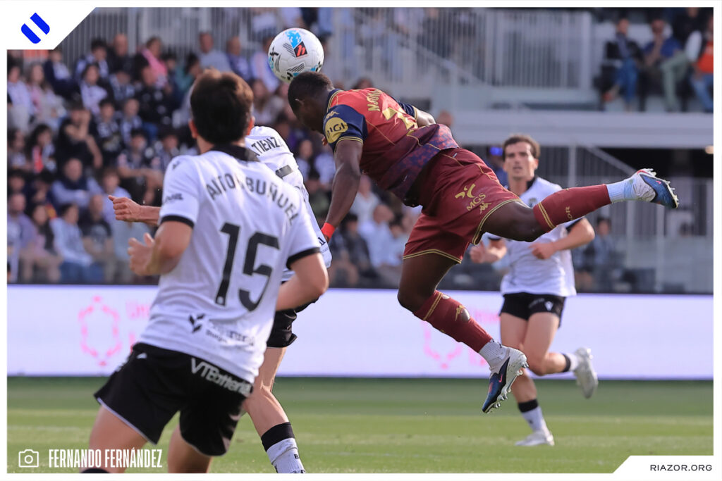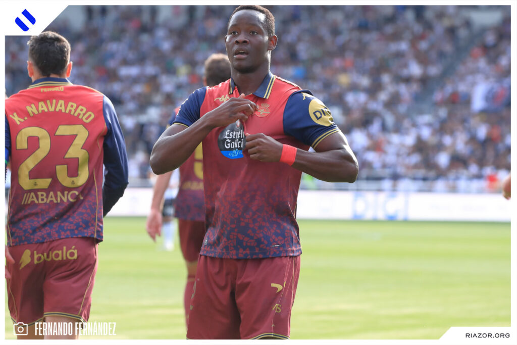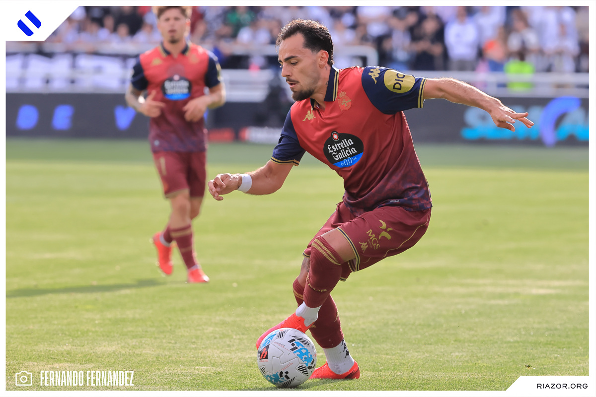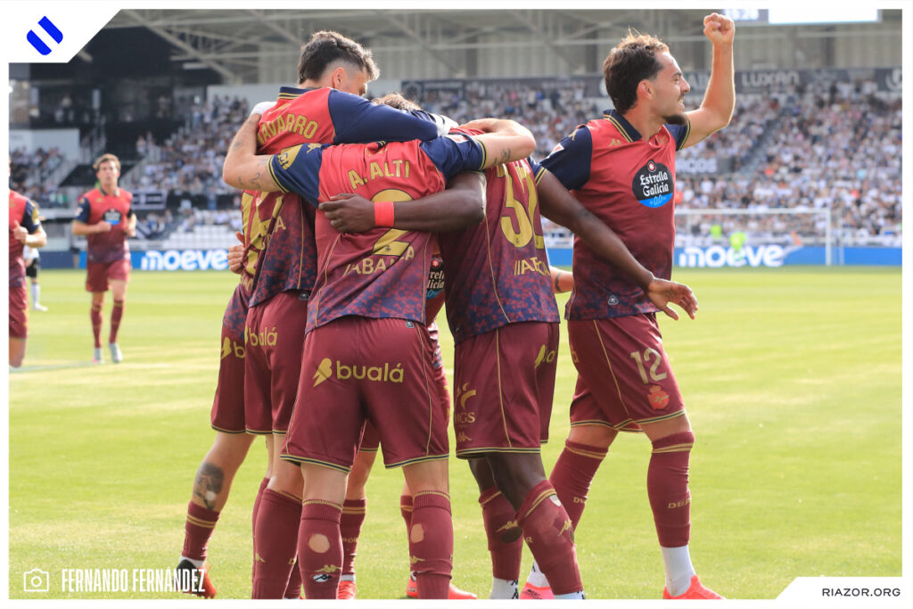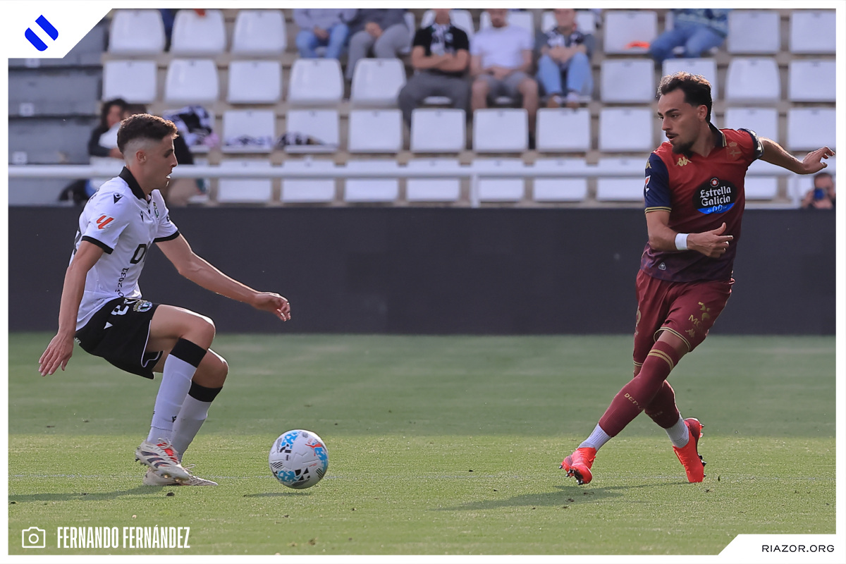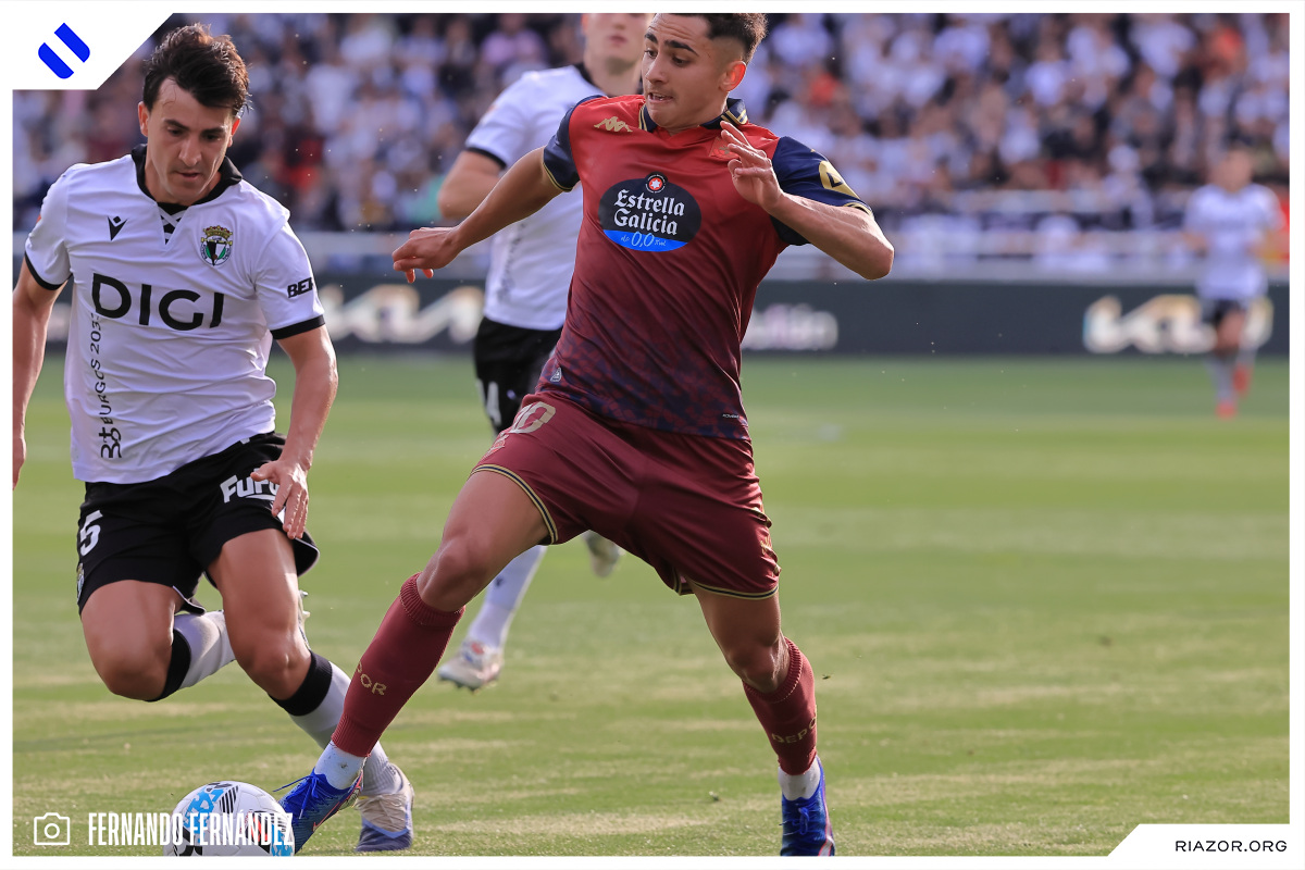 Tras un inicio igualado y de alta intensidad, el Deportivo pudo adelantarse en el electrónico pasado el cuarto de hora. Quagliata ganó línea de fondo y puso un peligroso pase atrás que llegó a puntear Luismi Cruz. El más rápido para recoger la pelota suelta fue un Nsongo Bil que perforó las redes burgalesas con un potente disparo raso.
