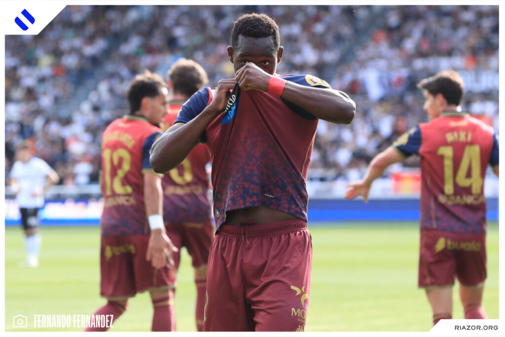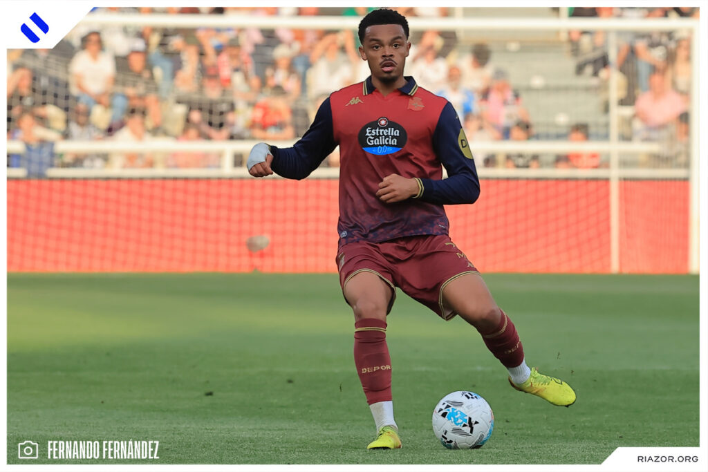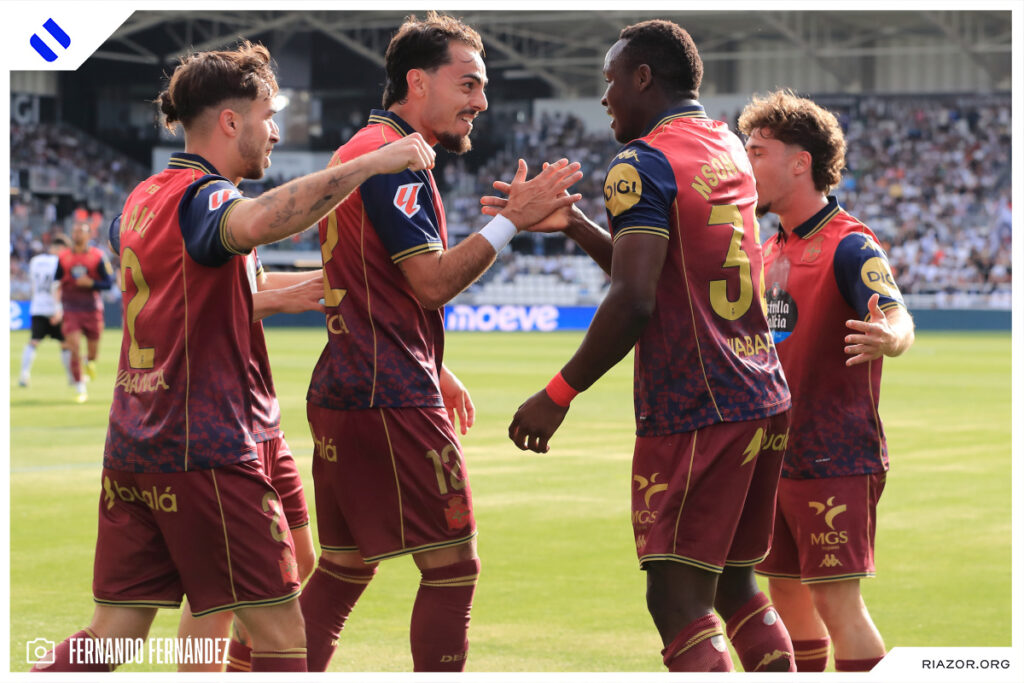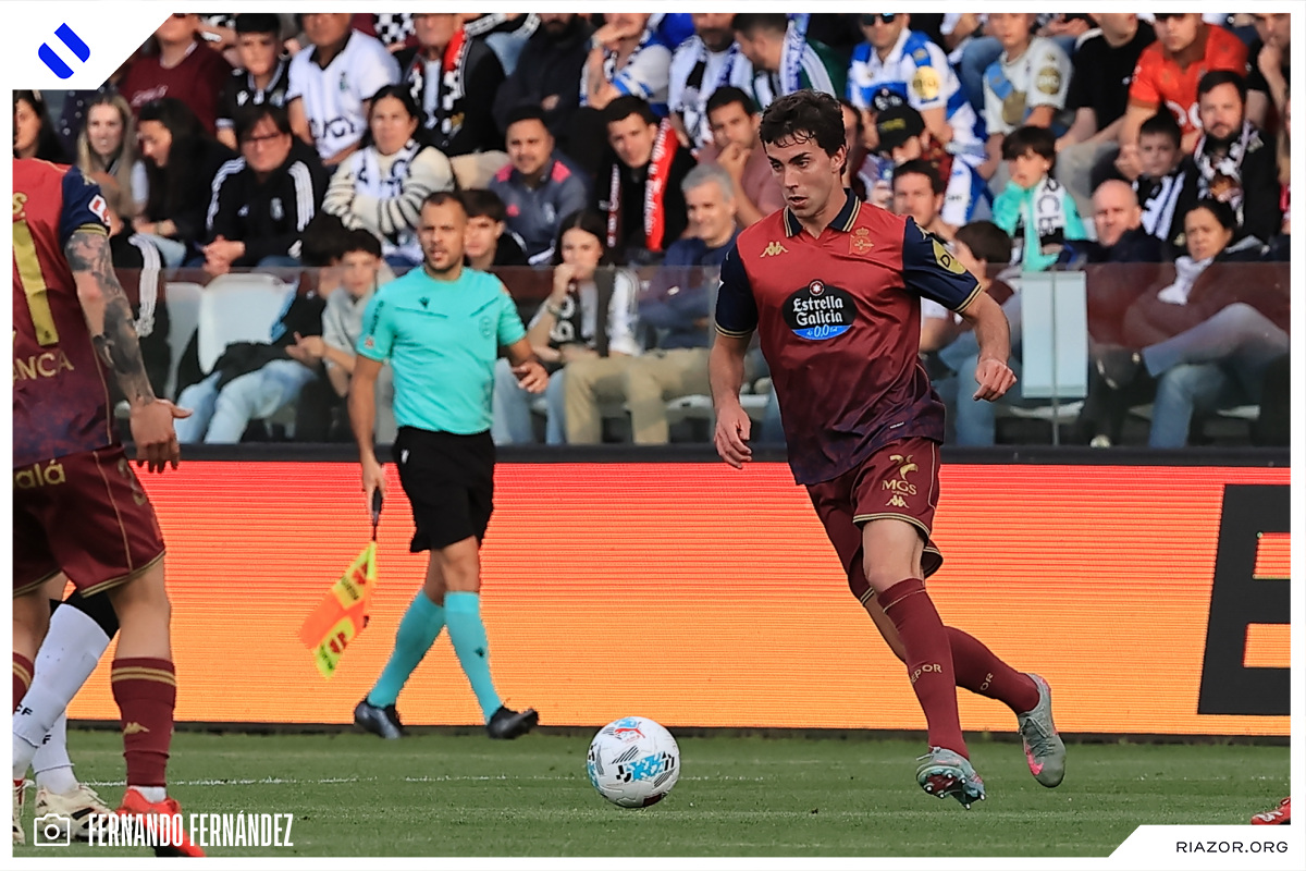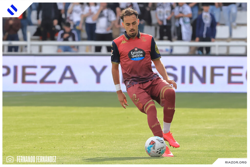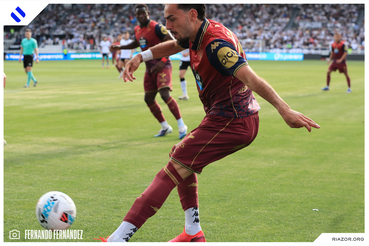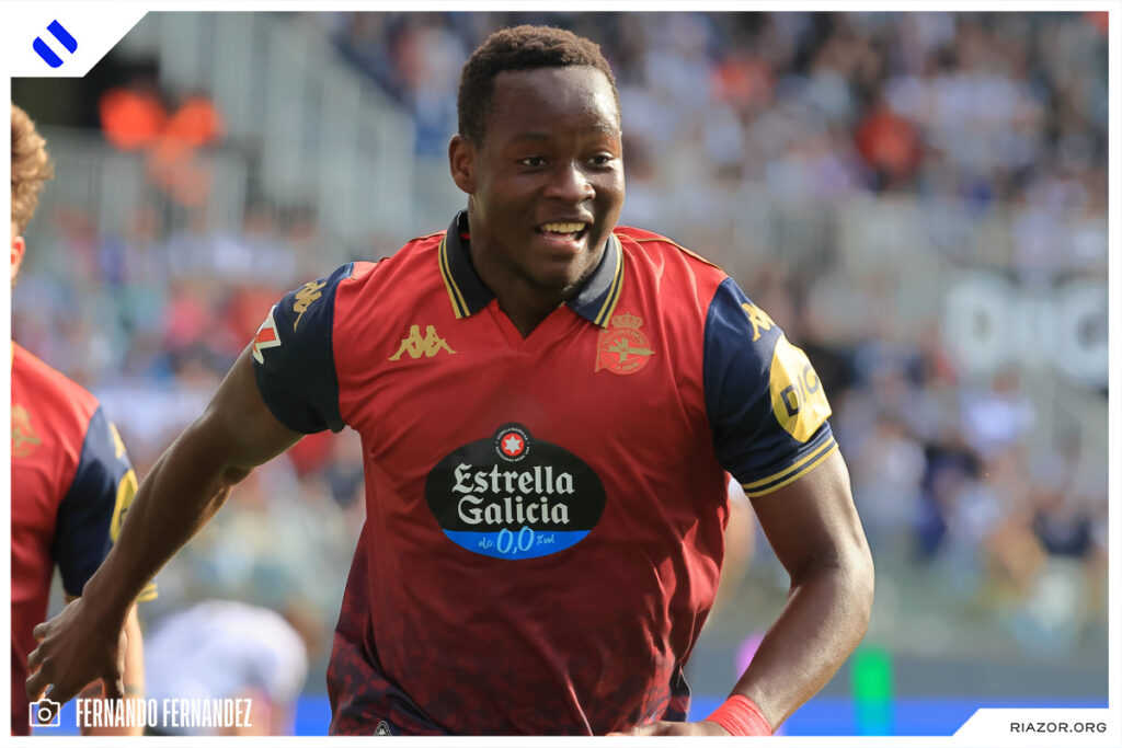 Tras un inicio igualado y de alta intensidad, el Deportivo pudo adelantarse en el electrónico pasado el cuarto de hora. Quagliata ganó línea de fondo y puso un peligroso pase atrás que llegó a puntear Luismi Cruz. El más rápido para recoger la pelota suelta fue un Nsongo Bil que perforó las redes burgalesas con un potente disparo raso.