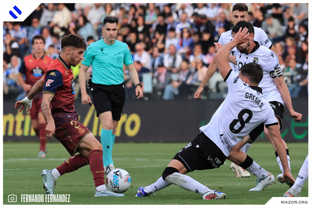 En la segunda parte no hubo goles, pero siguió la acción. La tensión seguía a flor de piel y las ocasiones para ambos equipos llegaron en los minutos finales. Los locales intimidaron la meta blanquiazul con centros laterales rematados por Fer Niño, Atienza y Mollejo. El Deportivo, por su parte, tuvo las más claras en disparos lejanos de Escudero.