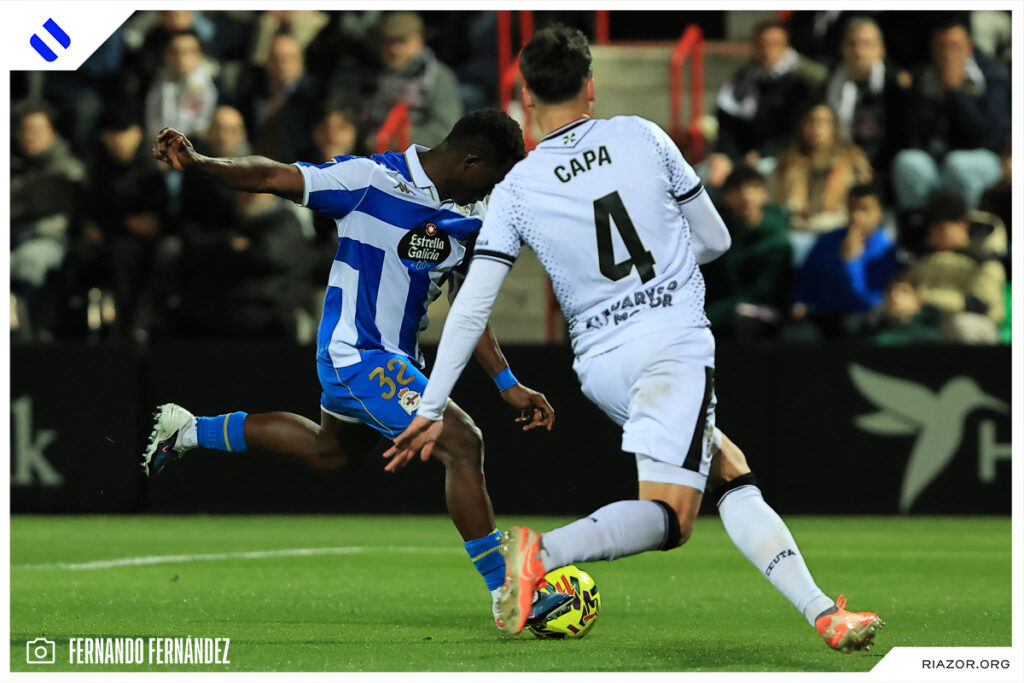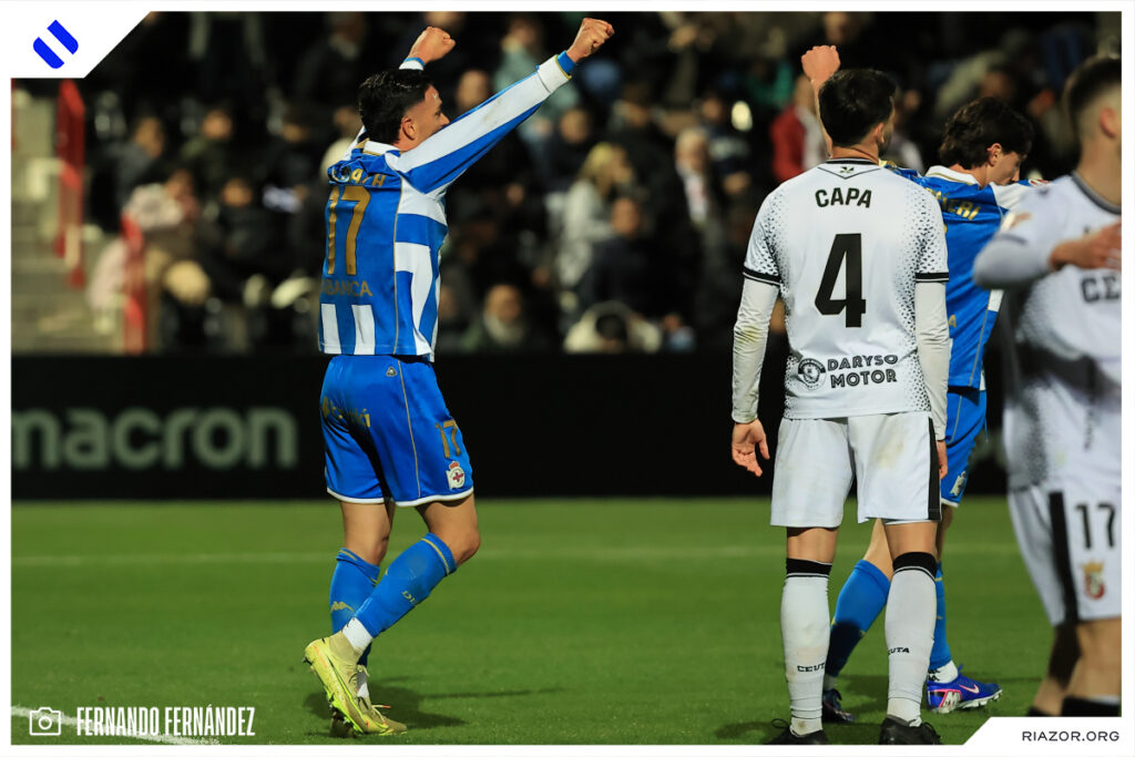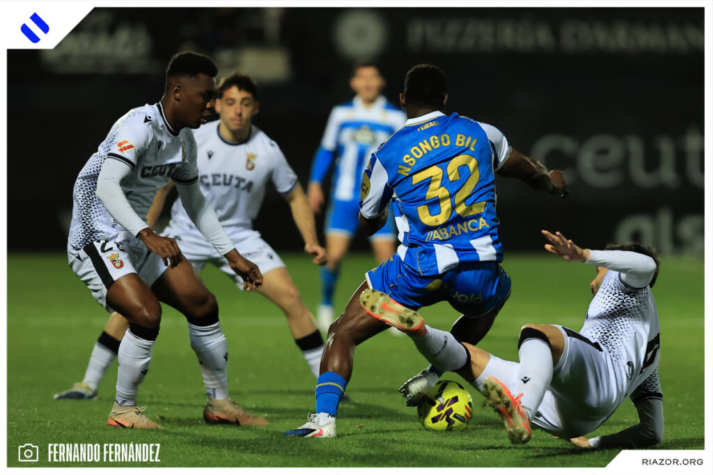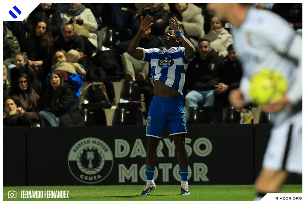 El Deportivo regresó a la senda de la victoria para dar un golpe sobre la mesa y volver -a la espera de que juegue el Castellón- a puestos de ascenso directo cuando restan doce jornadas para el final. El conjunto herculino venció 1-2 gracias a los goles de Nsongo Bil y Altimira, el del lateral en el último minuto de partido, dándole así la vuelta al tanto inicial de Marcos. Así se vivió el encuentro entre Ceuta y Deportivo a través nuestras imágenes.