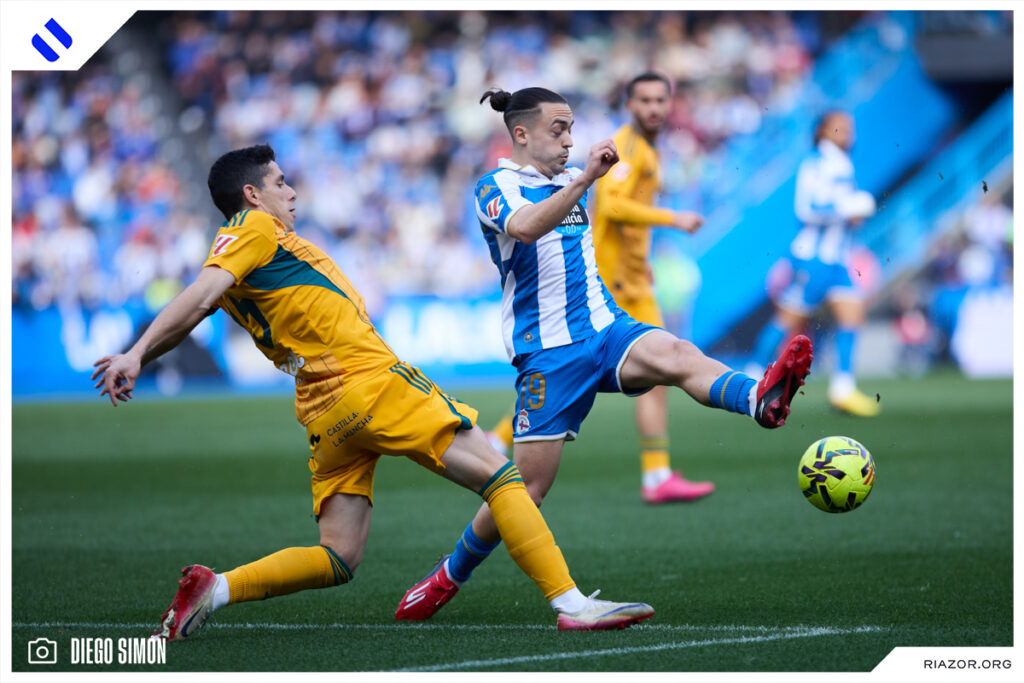 El Deportivo salió mucho mejor plantado al terreno de juego que el Albacete. Los blanquiazules dominaron el balón en los primeros compases y maniataron al conjunto manchego en su propio campo. A pesar de dominar la pelota, al Deportivo le faltó colmillo para generar numerosas ocasiones, pero en esta ocasión supo convertir las pocas opciones de las que dispuso.