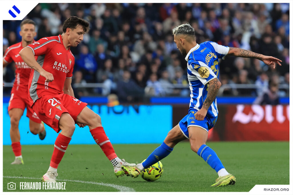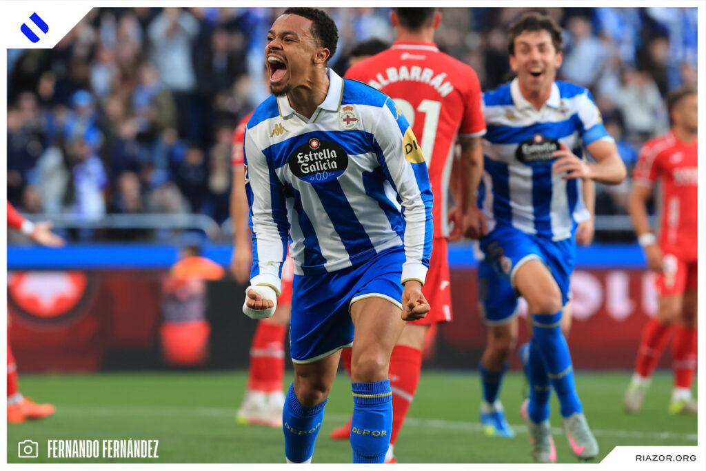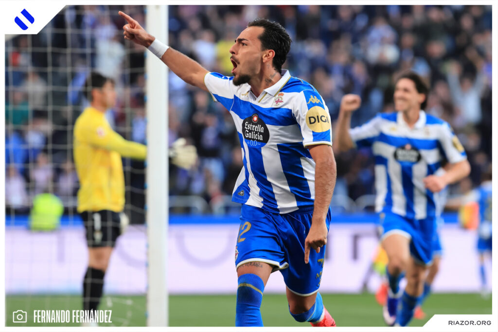 El encargado de anotar el otro tanto del encuentro fue otro defensor. Quagliata duplicó la ventaja deportivista a la media hora de juego. De nuevo Altimira colgó un centro desde la banda derecha al área. Allí entró como una exhalación y libre de marca el palermitano, que solo tuvo que colocar su pierna izquierda para enviar el balón al fondo de las redes.