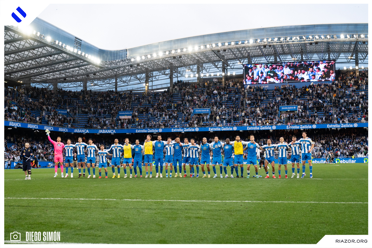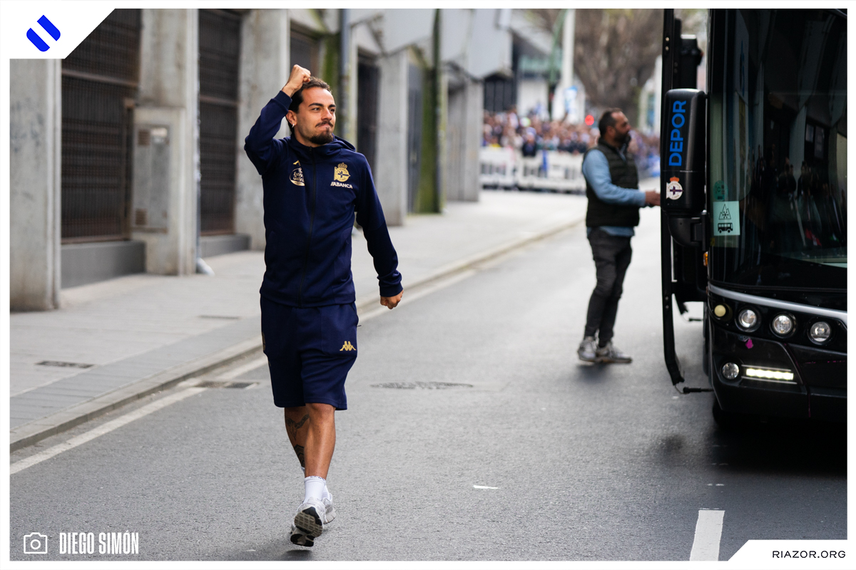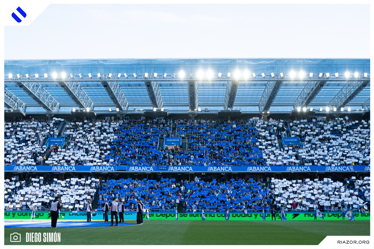 Un mar de banderas blanquiazules ondeadas por miles de aficionados deportivistas esperó la llegada del autobús con los jugadores del Deportivo a Riazor. Dentro del estadio, 28.423 espectadores abarrotaron las gradas. Hubo mosaico en la salida de los futbolistas al verde y récord de asistencia en un partido de LaLiga Hypermotion en la presente temporada.