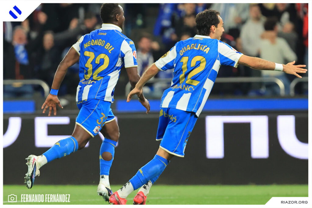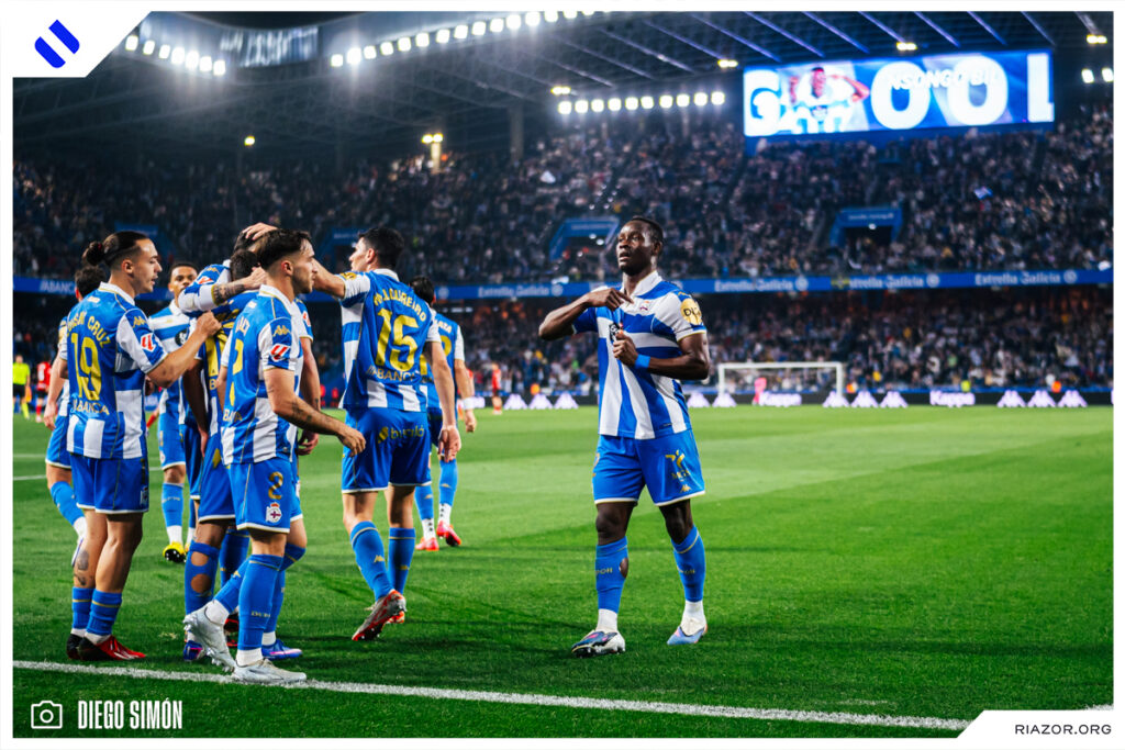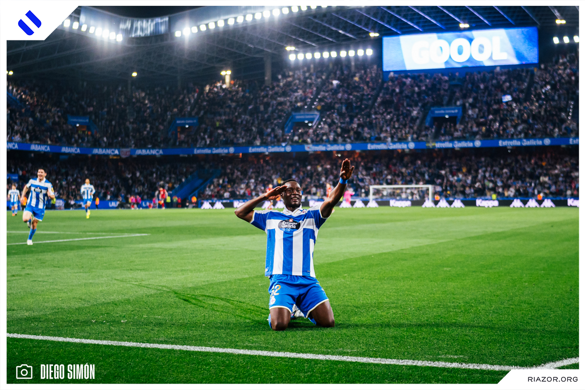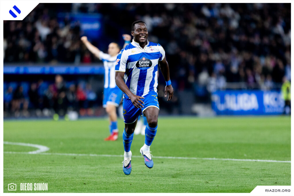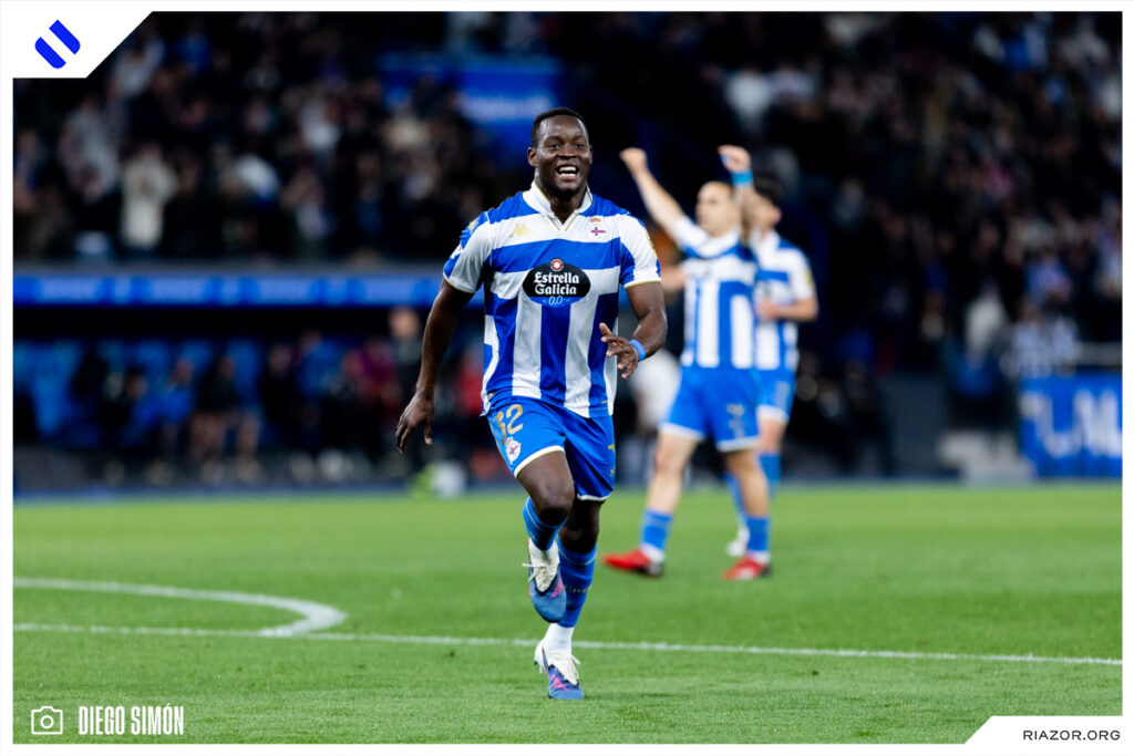 A falta de 20 minutos para el final, el Deportivo dejó el encuentro encarrilado. Yeremay volvió a aparecer con una imponente arrancada desde la banda izquierda. Al llegar a la altura del área asistió con un pase atrás a un Nsongo Bil que definió a la perfección con un zurdazo cruzado. El camerunés celebró su primer gol en Riazor besando el escudo del Dépor.