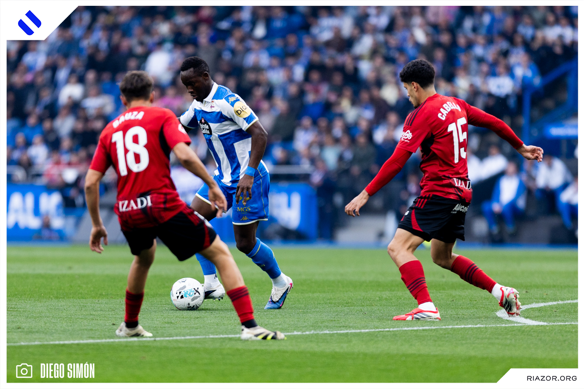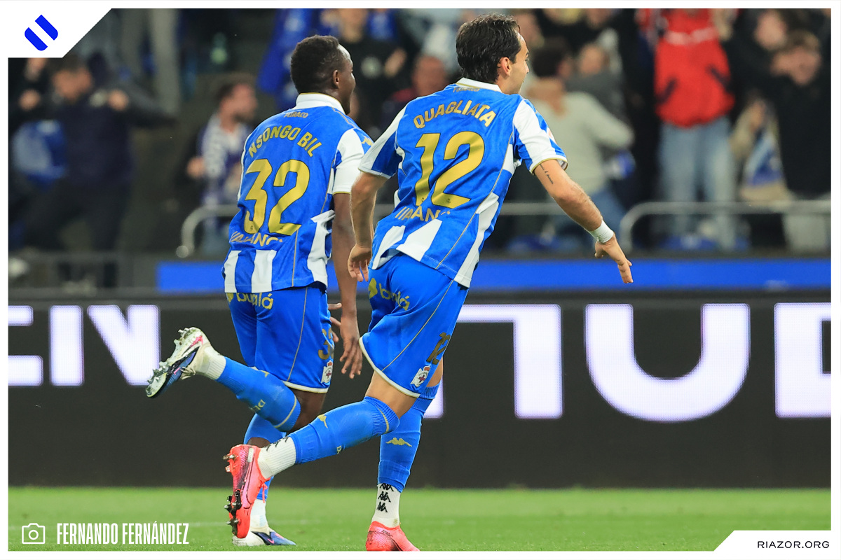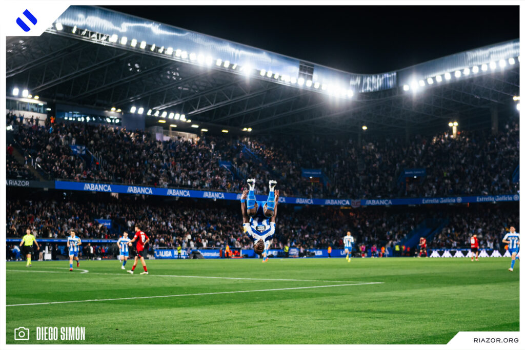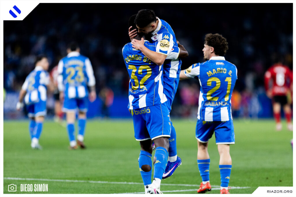 A falta de 20 minutos para el final, el Deportivo dejó el encuentro encarrilado. Yeremay volvió a aparecer con una imponente arrancada desde la banda izquierda. Al llegar a la altura del área asistió con un pase atrás a un Nsongo Bil que definió a la perfección con un zurdazo cruzado. El camerunés celebró su primer gol en Riazor besando el escudo del Dépor.
