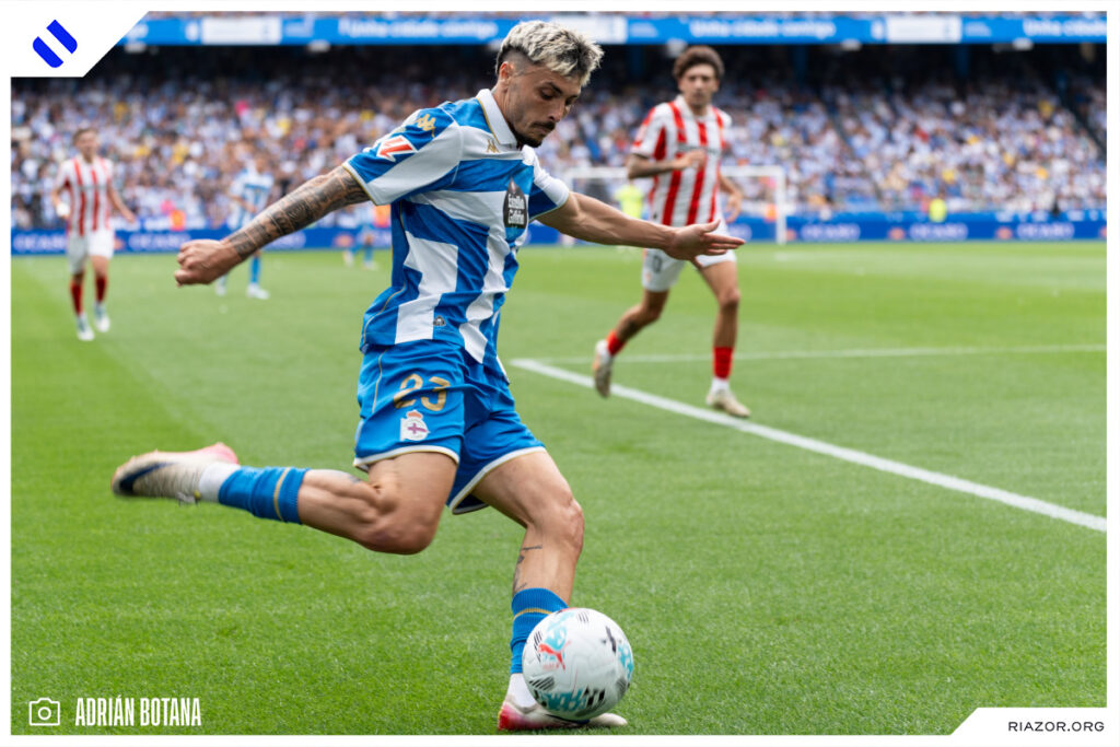 De entre las caras nuevas en la titularidad, la más novedosa fue la de Samuele Mulattieri. Hace poco más de diez días desde que el punta italiano aterrizó en A Coruña. En esta semana y media, ya le ha dado tiempo a ganarse la confianza de Hidalgo para ser titular. Su gol y su penalti forzado en Leganés le abrieron las puertas del once inicial. En su estreno en Riazor jugó una hora en la que dejó buenas sensaciones. Fue la referencia del ataque blanquiazul, actuando como hombre boya a la hora de bajar desplazamientos en largo. Además, tuvo algunas ocasiones para abrir el marcador demostrando su poderío aéreo.