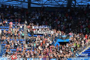 El ambiente fue festivo durante todo el día en A Coruña. Así fue como las dos aficiones se dedicaron varios mensajes durante el partido, además de aplausos.