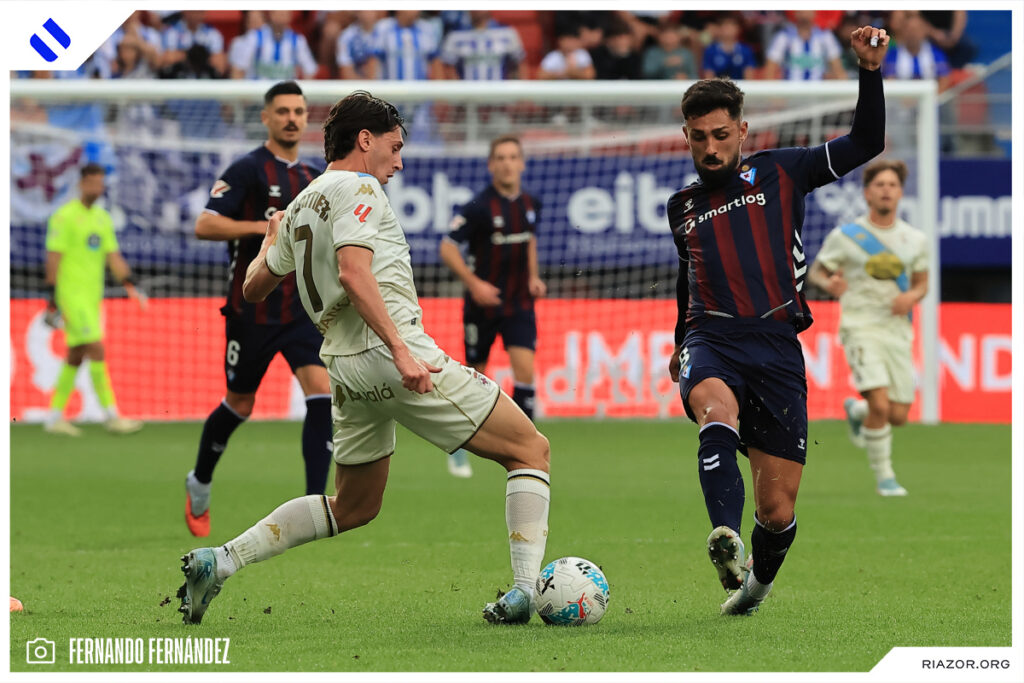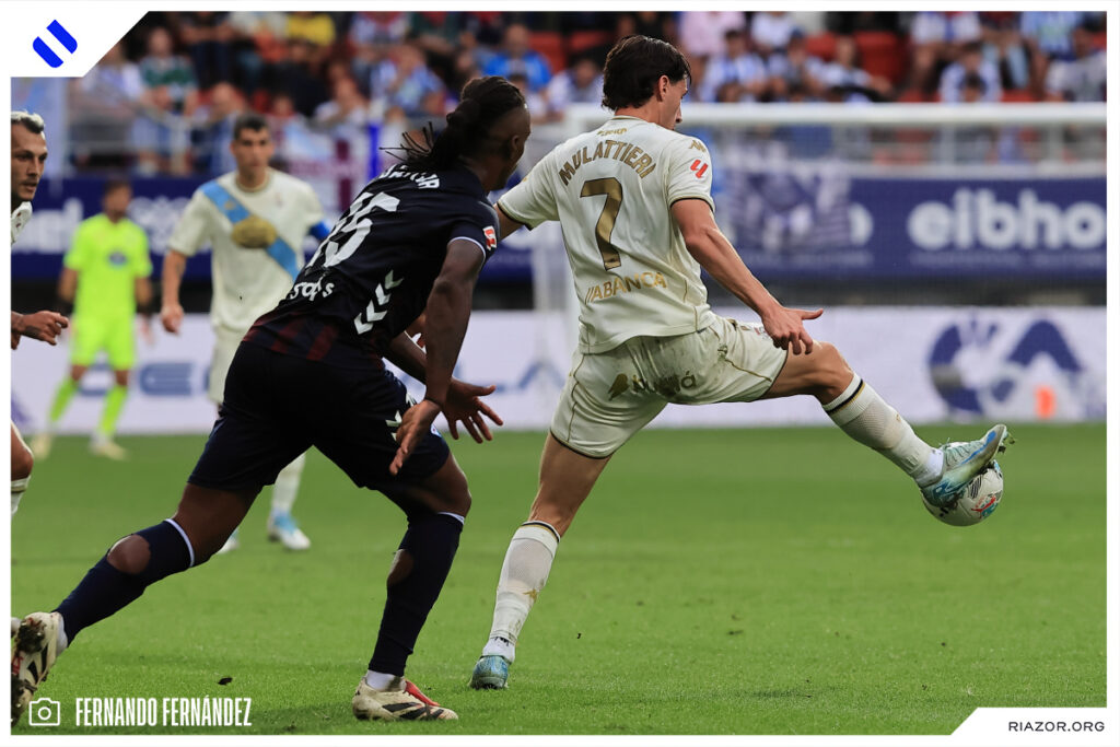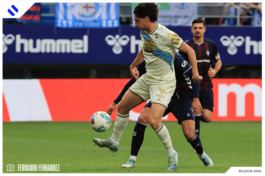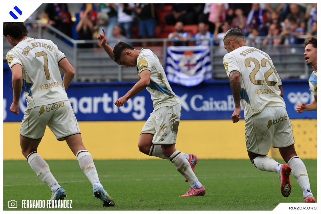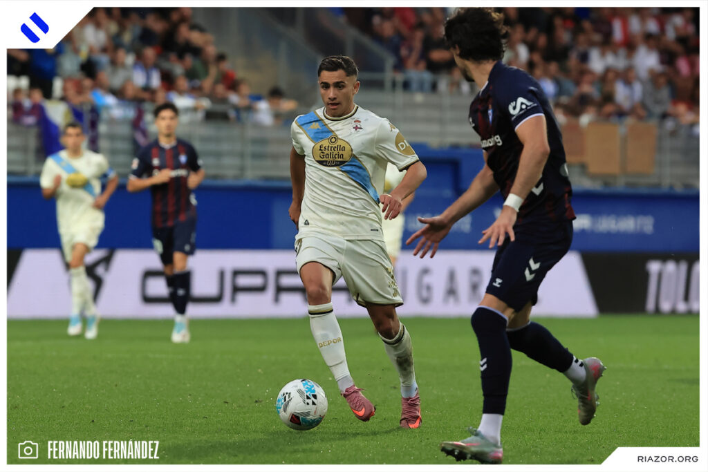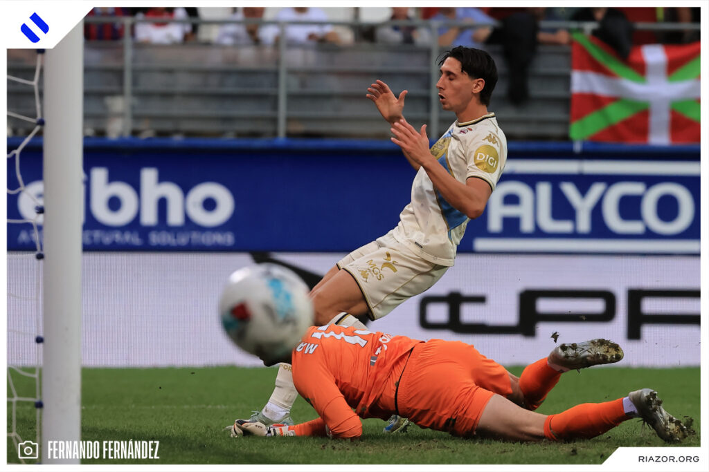No tuvo su mejor día de cara a puerta el Deportivo. Parece que a los atacantes blanquiazules se les mojó la pólvora antes del encuentro en Ipurua. El Dépor tuvo claras ocasiones para ampliar su ventaja y vivir más cómodo durante todo el partido. La primera de ellas fue en el primer minuto del encuentro. Una gran acción de Yeremay finalizó con un centro con el exterior. Mulattieri esperaba solo en el área, pero su remate fue muy defectuoso y perdonó al poco de comenzar.