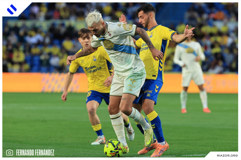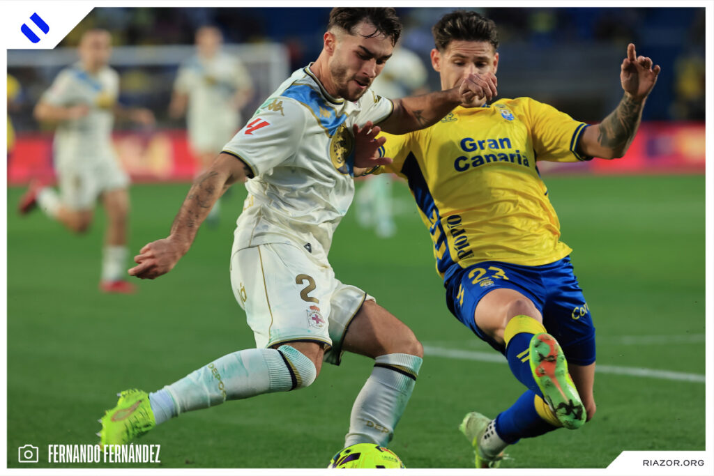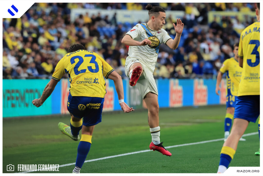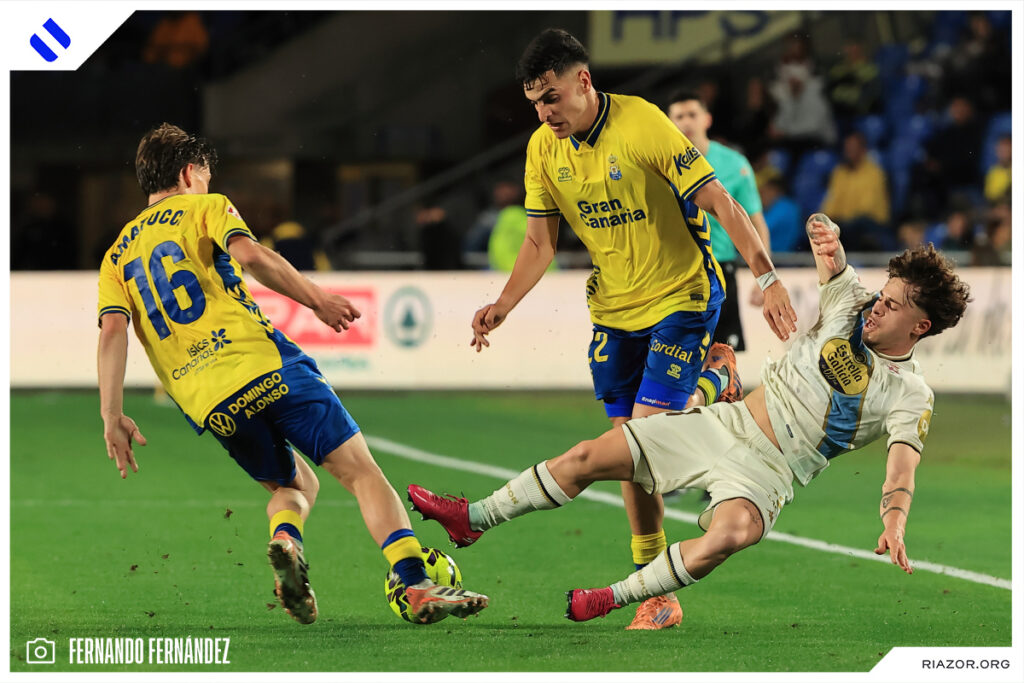 La UD Las Palmas saltó al terreno de juego con mucha más intensidad que el Dépor. Esto se reflejó en el dominio de la pelota, que fue plenamente local en los primeros minutos, y en la alta presión que ahogaba a los blanquiazules. A pesar de ello, cuando el conjunto herculino lograba salir lo hacía con mucho peligro, disponiendo de claras ocasiones en las botas de Yeremay.