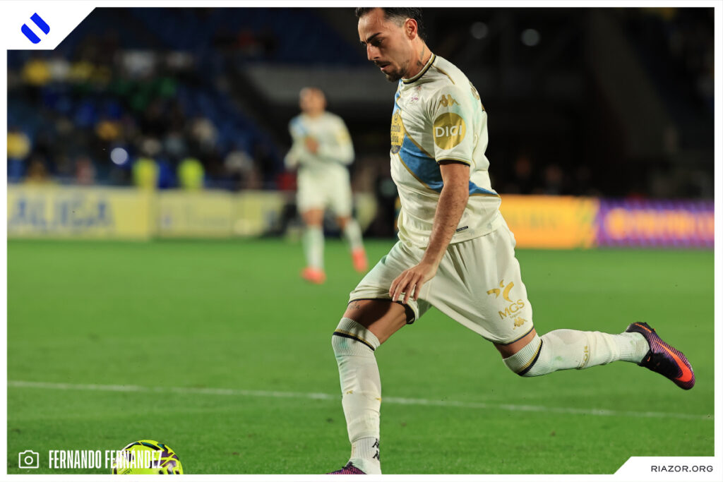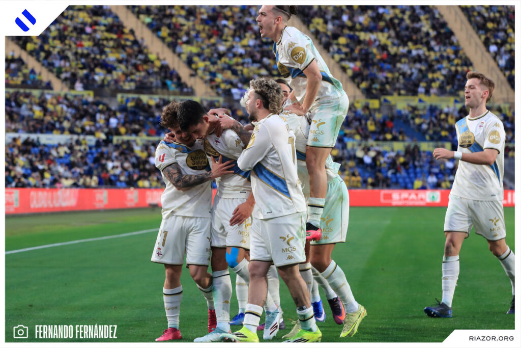 Tras el tanto blanquiazul, Las Palmas siguió insistiendo y -unos diez minutos después- Jesé Rodríguez provocó un penalti. Jonathan Viera fue el encargado de ejecutarlo, pero Álvaro Ferllo -con una intervención de escándalo- evitó el tanto del capitán amarillo. La resistencia del guardameta riojano no fue eterna y, al borde del descanso, Jesé lo batió con un buen remate tras un centro al área.