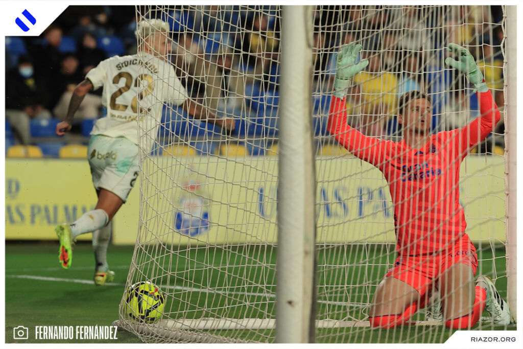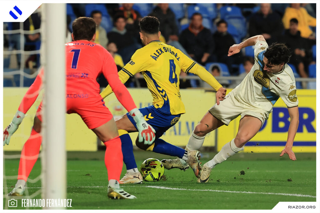 A pesar de la superioridad en lo que al juego respecta de los locales, lo cierto es que el Deportivo estuvo a pocos milímetros de llevarse los tres puntos del Estadio de Gran Canaria. Noubi filtró un magnífico pase al espacio para una de las numerosas incursiones de Quagliata en ataque. El italiano puso un gran pase al corazón del área para el remate a bocajarro de un Stoichkov que -en esta ocasión- no perdonó.