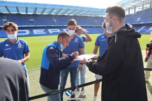Desde las 16:00 hasta las 18:00 horas, fue un goteo constante de aficionados y aficionadas que pasaron por los bajos del estadio para acceder hasta el campo de Riazor. Allí les esperaba la plantilla del Dépor Juvenil al completo con Trilli y Noel. Además de ellos, Xosé A. Touriñán hizo las veces de maestro de ceremonias.