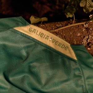 Como en Galicia Azul, en la parte posterior del cuello se puede leer GALICIA VERDE, nombre de esta equipación. Además, la tipografía ha sido diseñada por Rubén Prol.