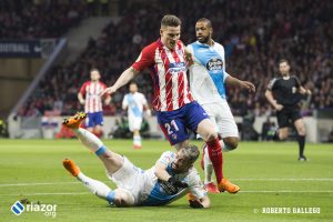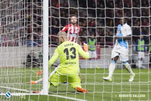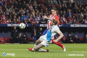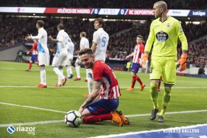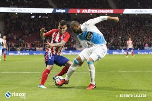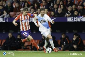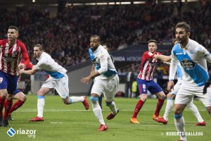 Con 0-0, el Deportivo había dispuesto de las mejores ocasiones para adelantarse, la más clara en uno contra uno de Lucas ante Oblak que paró con los pies el esloveno. Tras el tanto colchonero los gallegos tampoco se vinieron abajo y continuaron dominando el esférico y acercándose al área rival con frecuencia pero sin acierto.