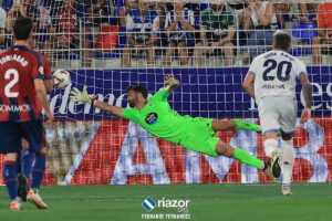 Germán adivinó las intenciones de Sielva en el penalti que abrió el marcador y estuvo cerca de detenerlo, pero le buen lanzamiento del centrocampista del Huesca hizo inútil la estirada del meta.