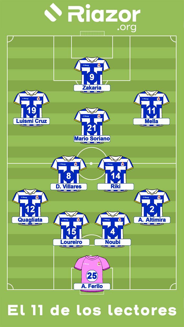 En el doble pivote repetiría la pareja formada por el capitán Diego Villares (52% de los votos) y un Riki (92% de los votos) que parece completamente asentado ya en la titularidad.