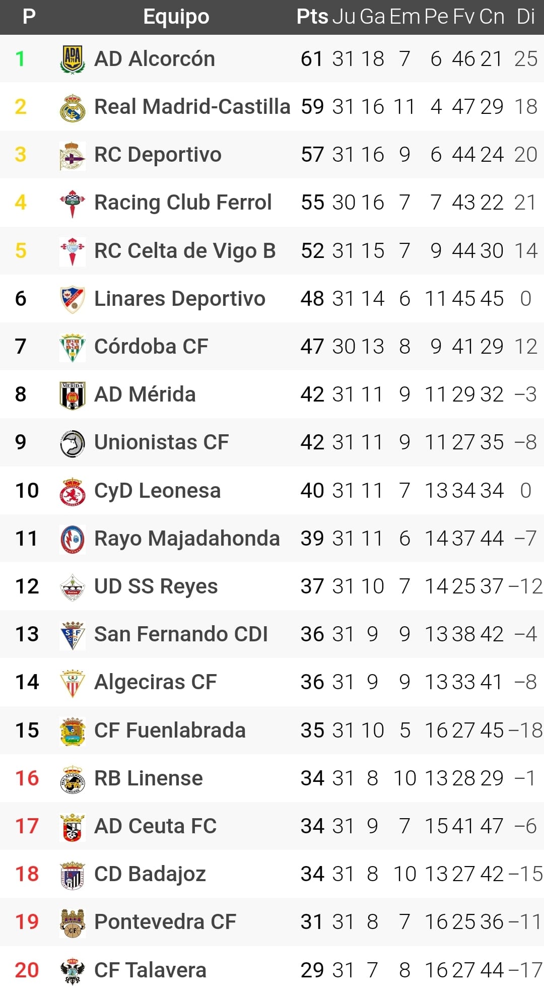 La disputa de la jornada 31 en el Grupo 1 de Primera Federación apenas clarificó nada a efectos clasificatorios. En lo que respecta a la lucha por el ascenso lo más noticiable fueron los pinchazos de dos de los mejores equipos de esta segunda vuelta, Racing de Ferrol y Celta B. En cuanto a la pelea por eludir el descenso todo sigue en un pañuelo. Así llega una nueva entrega de nuestra habitual sección en la que repasamos cómo les fue a Los Nuestros en esta jornada 31.