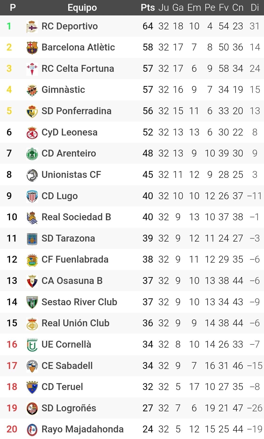 La jornada 32 resultó inmejorable para los intereses del Deportivo. A la victoria de los blanquiazules se sumaron las derrotas de sus más inmediatos perseguidores, lo que hace que los herculinos cuenten con seis puntos de ventaja a falta de solo seis jornadas por disputarse. La zona de playoff se comprime aún más, mientras que hasta diez equipos están inmersos en la batalla por eludir las tres últimas plazas de descenso. Así llega una nueva entrega de nuestra habitual sección en la que repasamos cómo les fue a Los Nuestros en esta jornada 32.