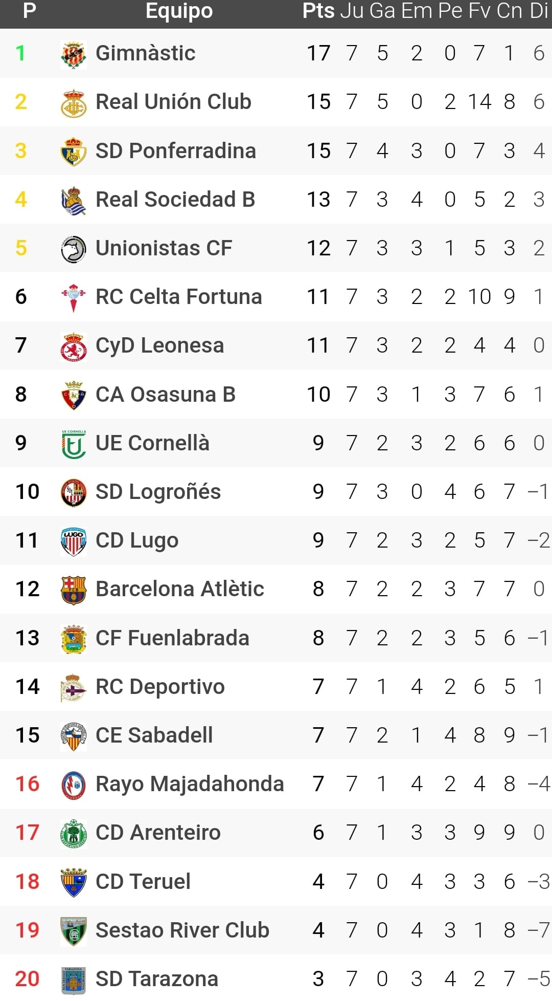 El Gimnástic de Tarragona se jugaba el liderato del Grupo I de Primera Federación con el aliciente de poder poner tierra de por medio, pero la Ponferradina fue capaz de frenar la racha victoriosa de los catalanes. Por su parte, el Deportivo sigue en caída libre y volvió a firmar una paupérrima actuación ante su afición que finalizó con derrota ante el Celta Fortuna y el equipo situado al filo del descenso. Así llega una nueva entrega de nuestra habitual sección en la que repasamos cómo les fue a Los Nuestros en esta jornada 7.