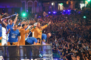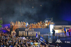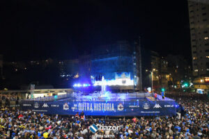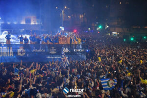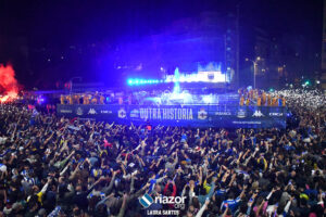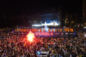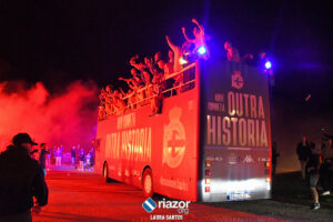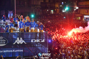La plantilla del Deportivo se dio un verdadero baño de masas por partida triple: primero en Riazor, después en Cuatro Caminos y para finalizar en la Torre de Hércules. Repasamos en imágenes la celebración en Cuatro Caminos y en la Torre:
