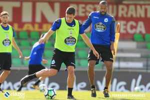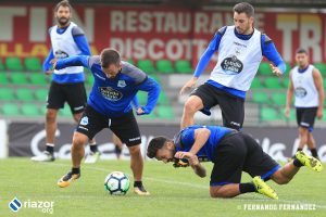 En la tarde de ayer, el Deportivo hizo un entrenamiento más físico. Divididos en dos grupos, trabajaron en diversas tareas físicas con el balón.