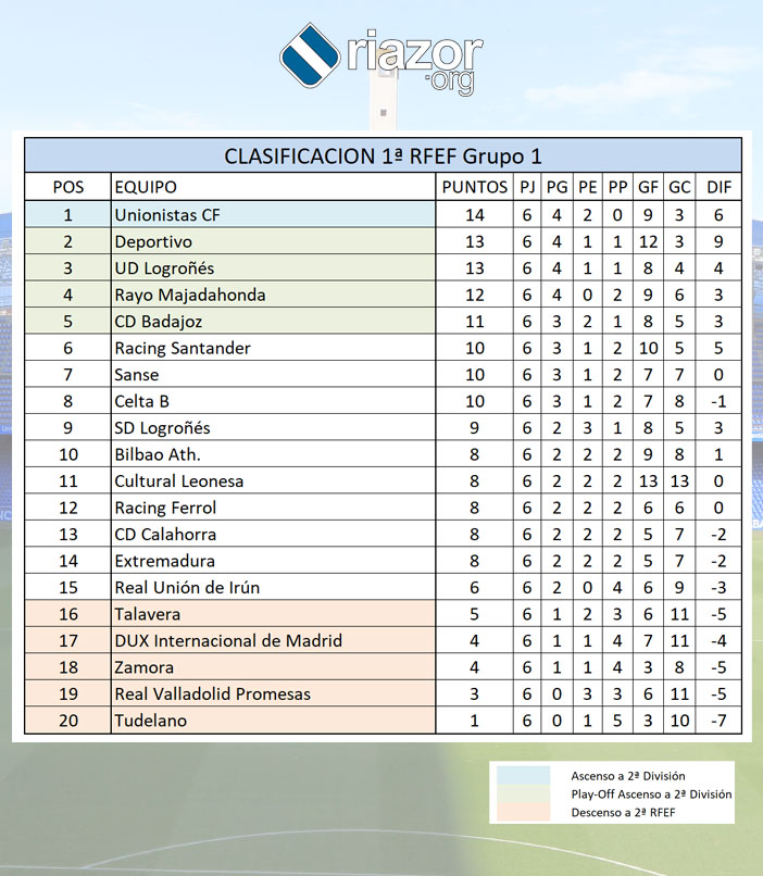 La jornada 6 en el Grupo I de Primera RFEF deja la zona alta de la tabla más comprimida que nunca. De los seis primeros clasificados tan solo uno, el UD Logroñés, sumó los tres puntos. Alguno como el Deportivo dejando escapar la victoria en el último suspiro, un triunfo que le hubiese devuelto al liderato. Así llega una nueva entrega de la sección en la que repasamos cómo les fue a Los Nuestros en esta jornada 6.