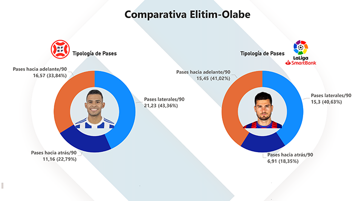 En primer lugar, cabe hacer un esbozo acerca del tipo de futbolista que ficha el Dépor. A través de los datos (recogidos de Wyscout), estableceremos varias clasificaciones que permitan situar a Olabe en el contexto de los centrocampistas de Segunda División el pasado curso.